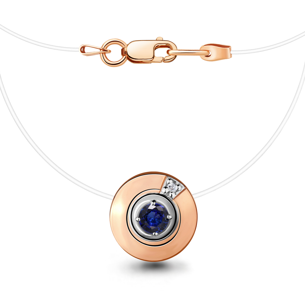 070044 Колье из Серебра с бриллиантом, леской, сапфиром