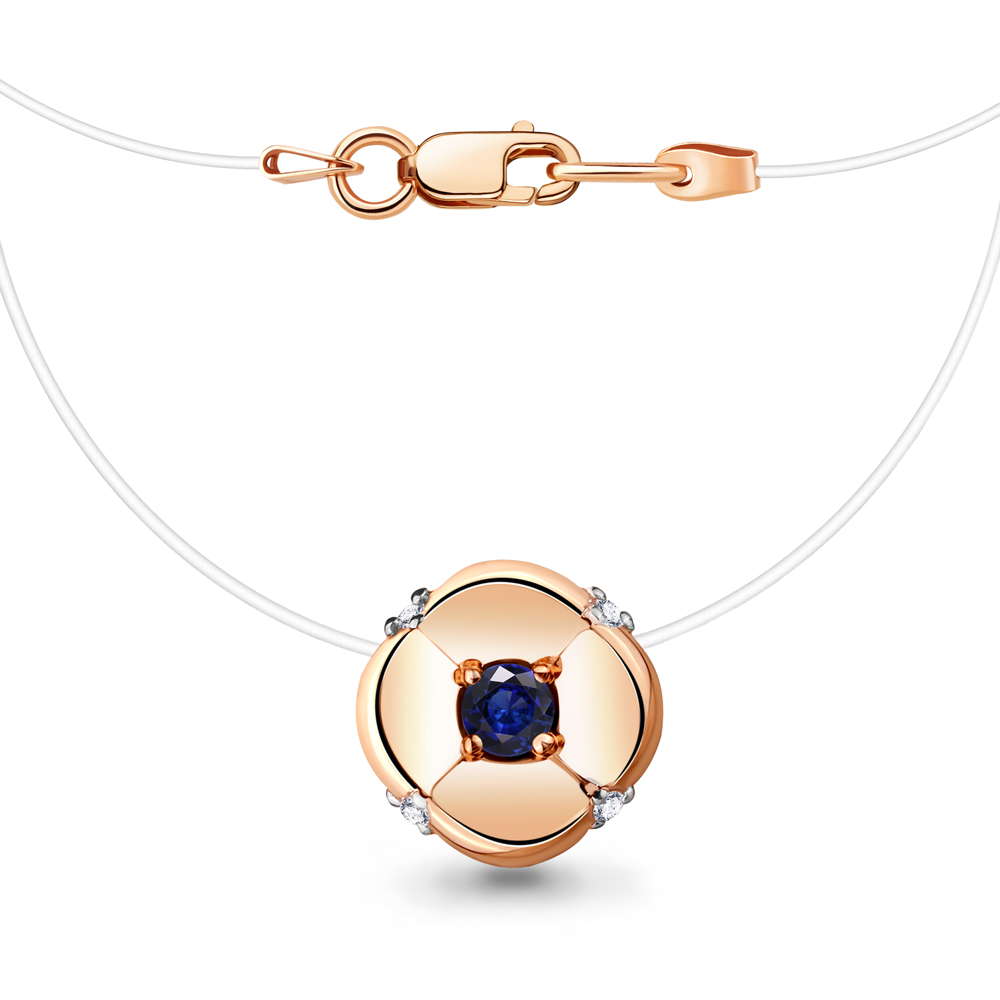 070045 Колье из Серебра с бриллиантами, леской, сапфиром