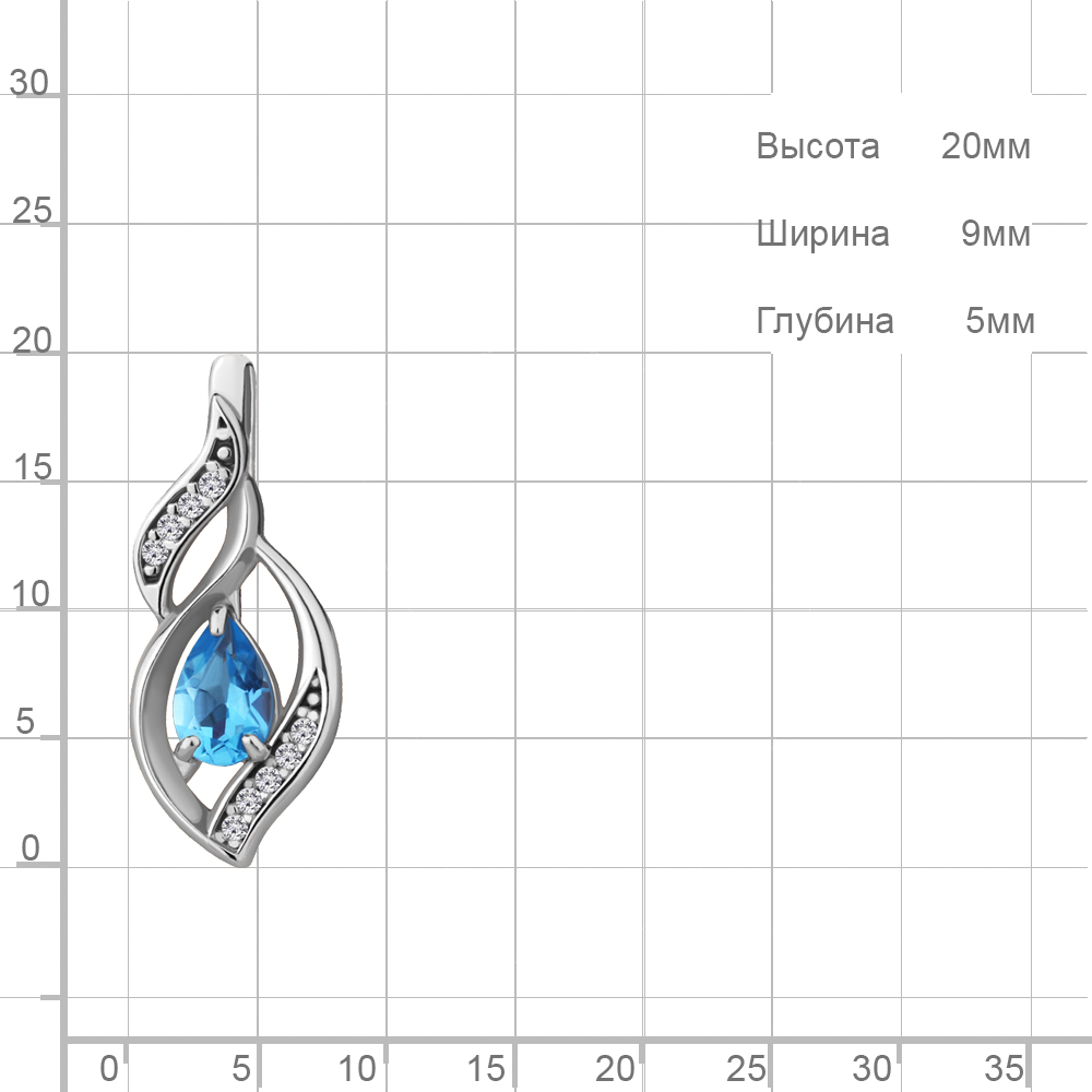 2426105А Подвеска из Серебра с топазом свисс блю, фианитами
