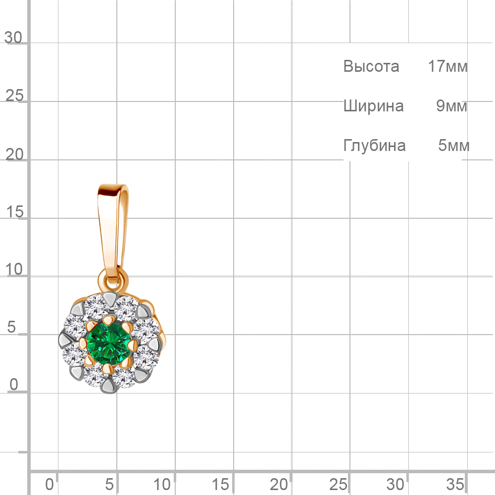 24708АГ Подвеска из Серебра с наноизумрудом, фианитами
