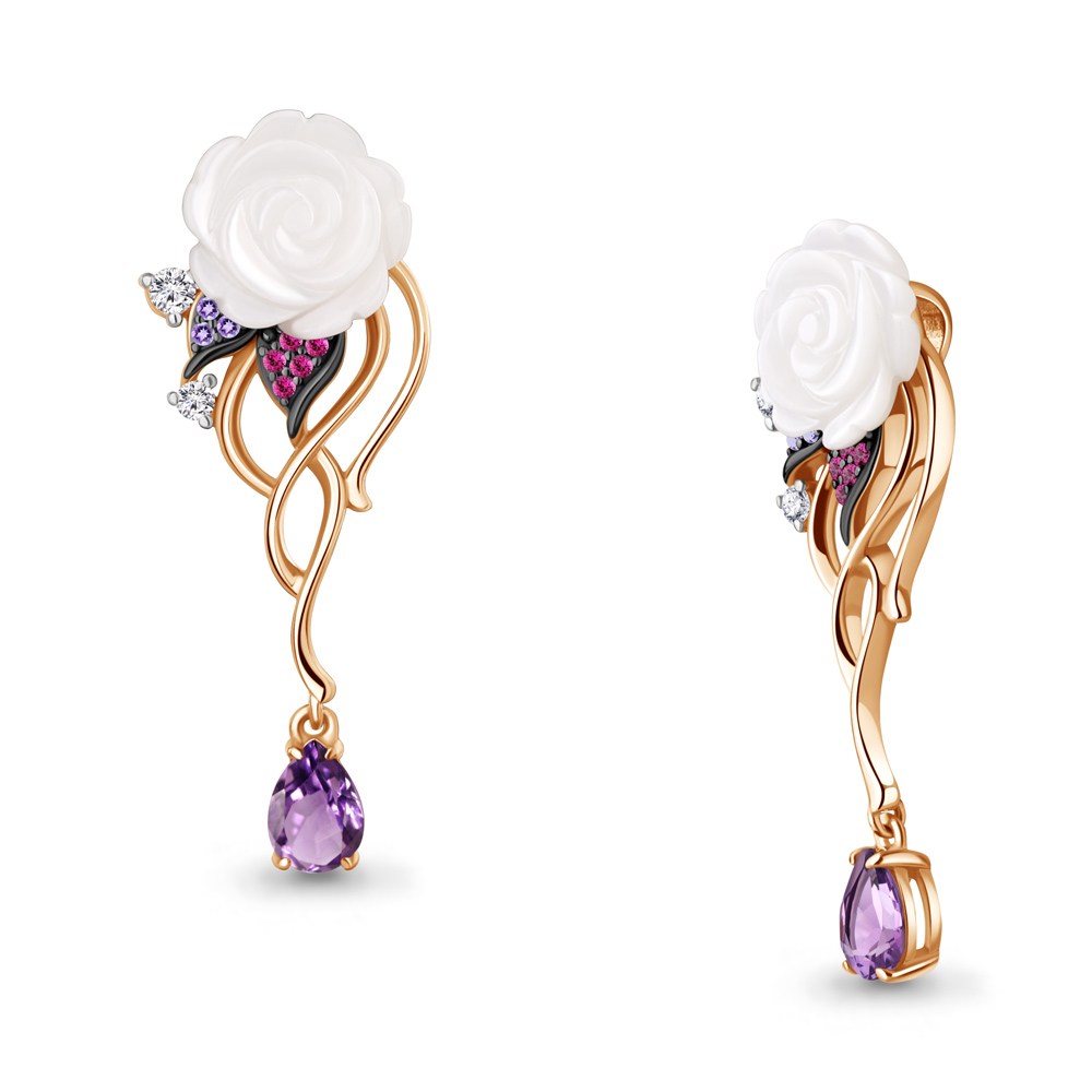 Цвета вставки Аметист, Бесцветный, фиолетовый, Рубин, Белый