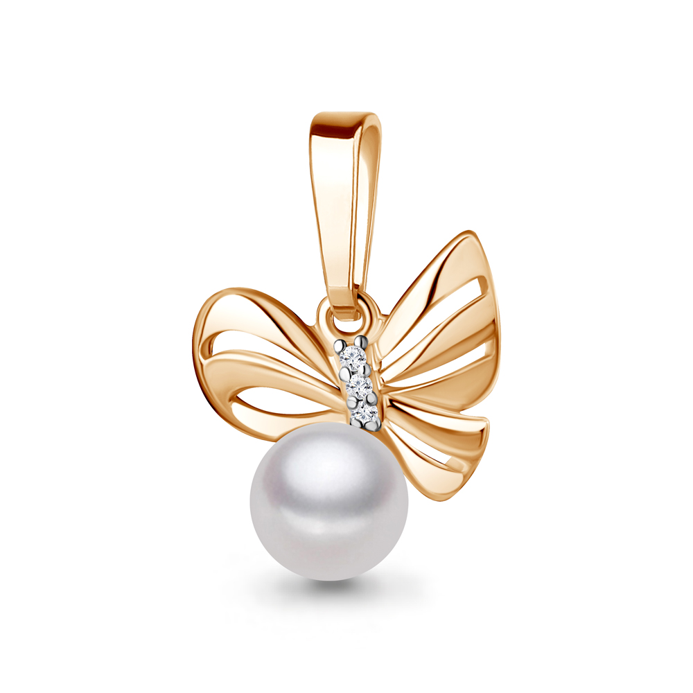 24841А Подвеска из Серебра с имитацией жемчуга, фианитами