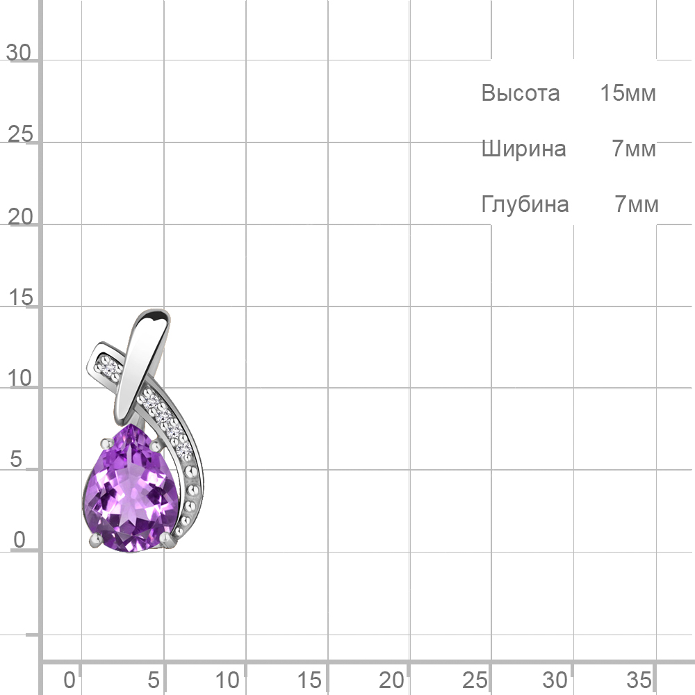 2512604 Подвеска из Серебра с аметистом, фианитами