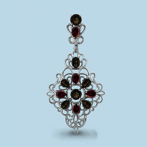 2515401 Подвеска из Серебра с гранатами, кварцами дымчатыми
