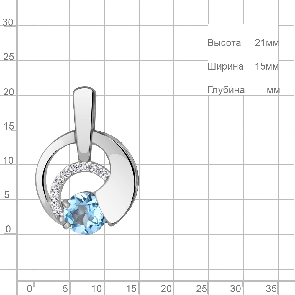2532505А Подвеска из Серебра с топазом свисс блю, фианитами