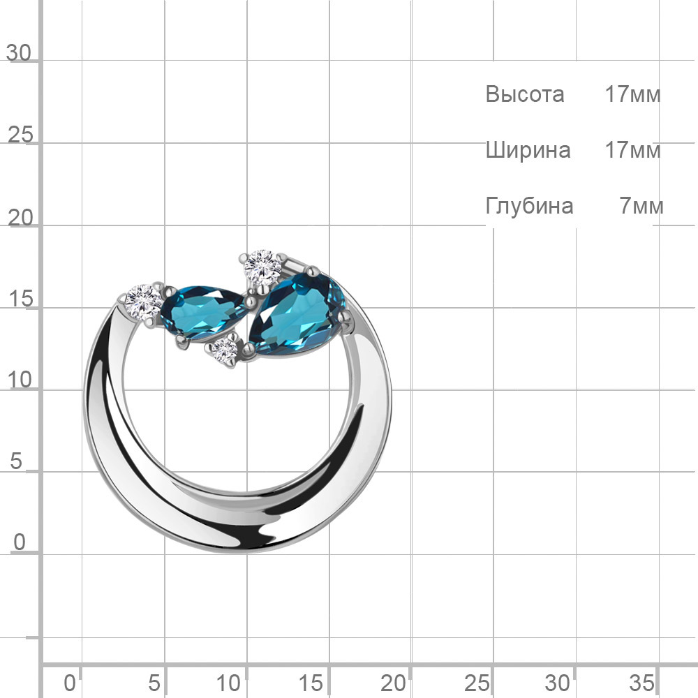 Описание камней 1 Топаз Лондон Блю; 1 Топаз Лондон Блю; 1 Фианит; 2 Фианит