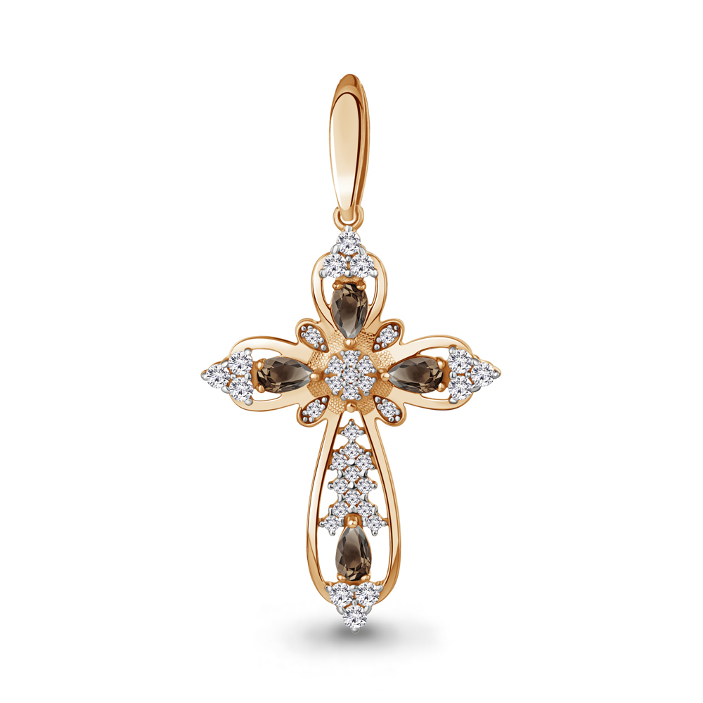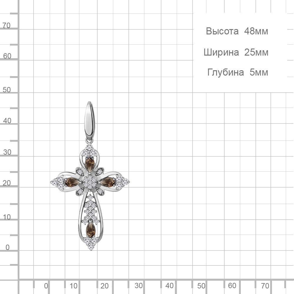 2542201А Подвеска из Серебра с кварцами дымчатыми, фианитами
