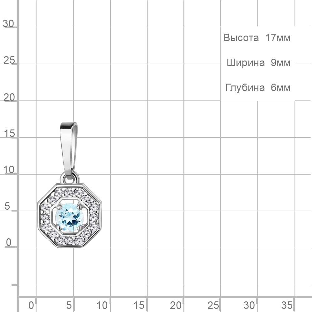 2543402А Подвеска из Серебра с топазом скай блю, фианитами