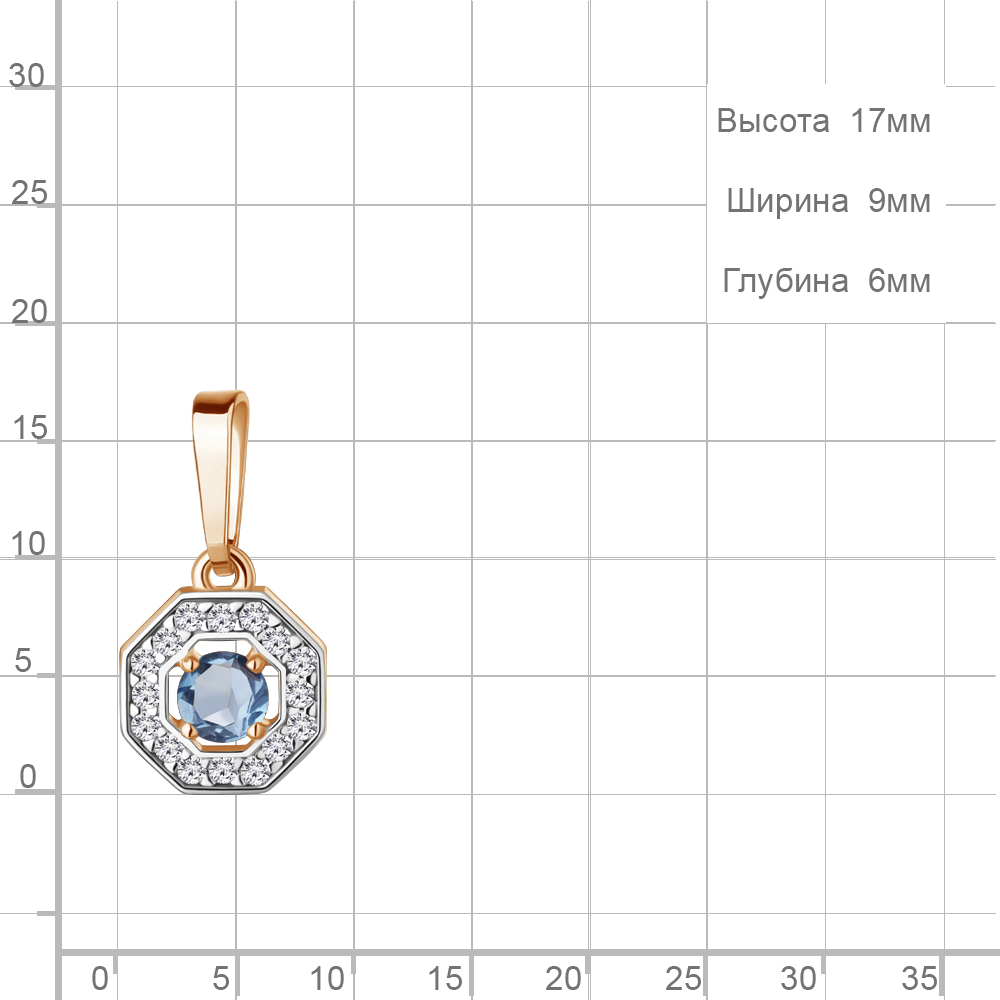Описание камней 1 Топаз Свисс Блю; 16 Фианит