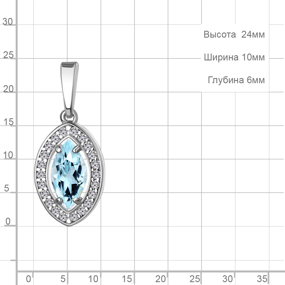 2543502А Подвеска из Серебра с топазом скай блю, фианитами
