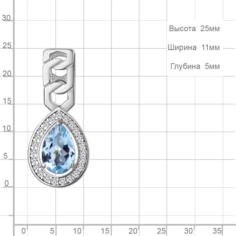 2543605А Подвеска из Серебра с топазом свисс блю, фианитами