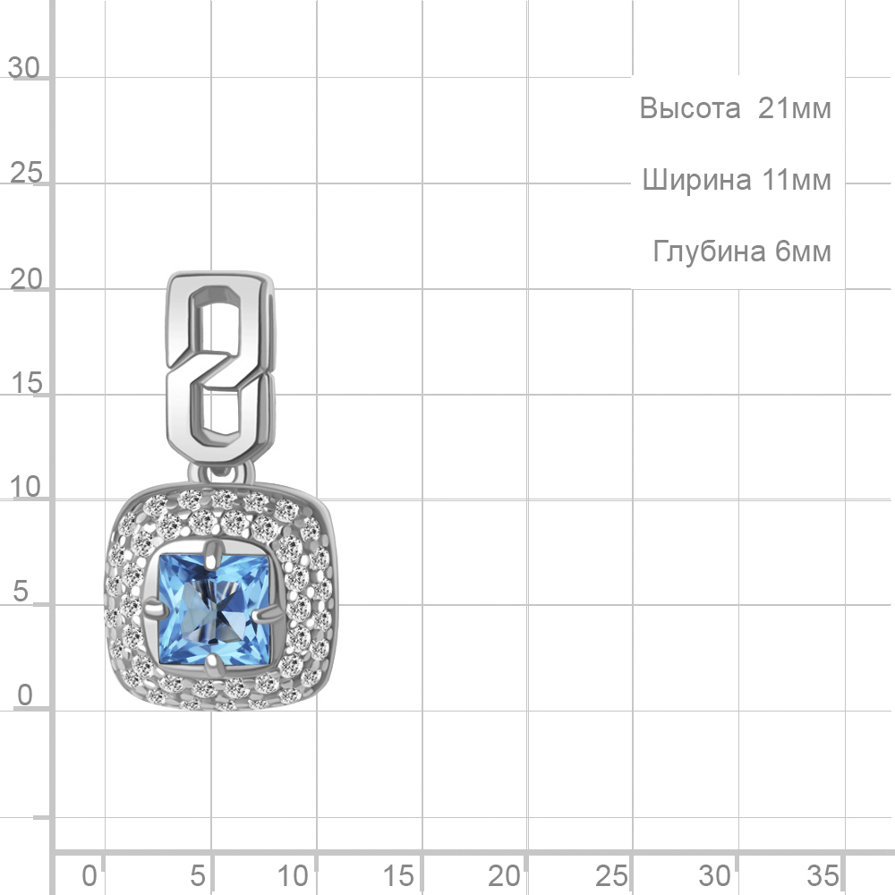2543705А Подвеска из Серебра с топазом свисс блю, фианитами