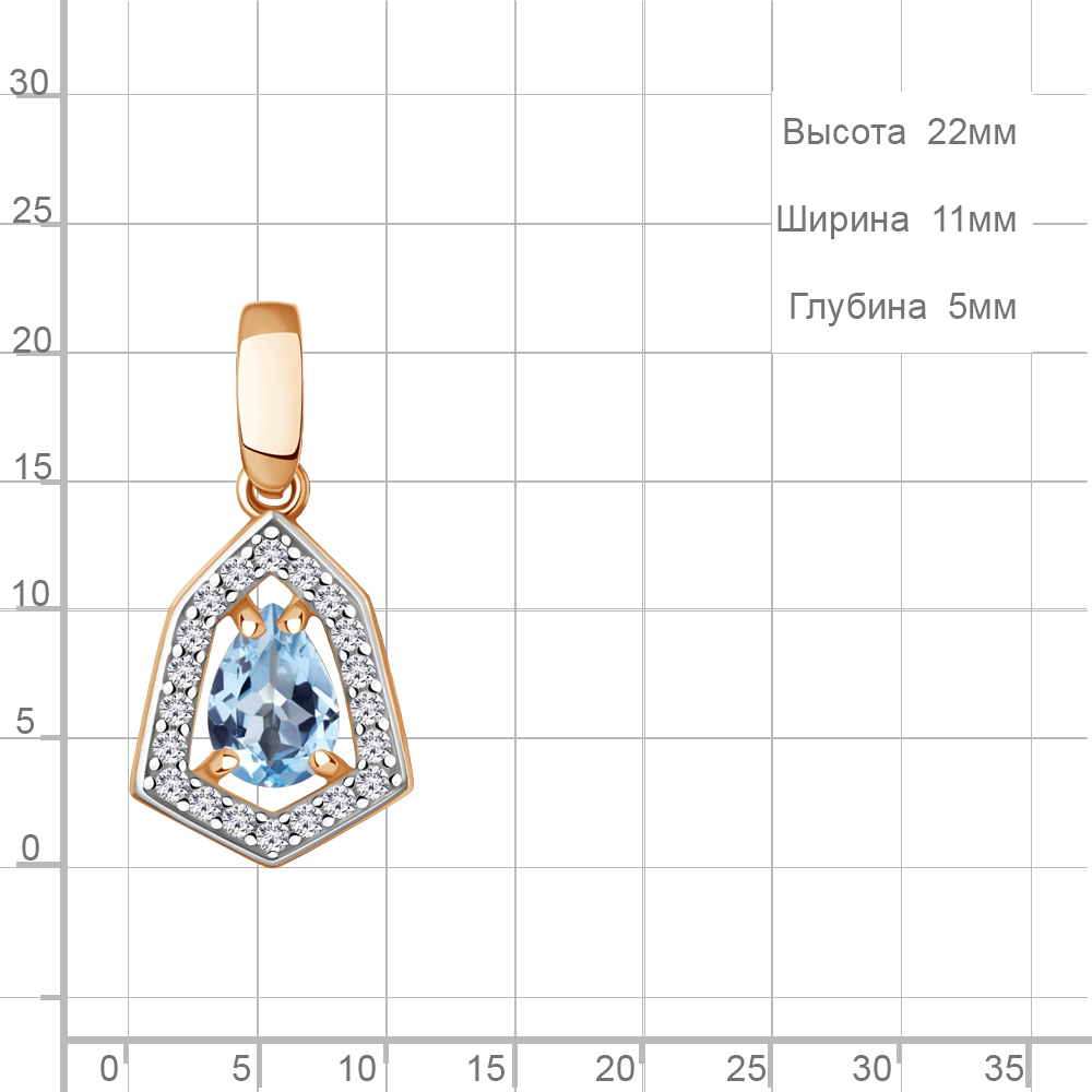 2544205А Подвеска из Серебра с топазом свисс блю, фианитами