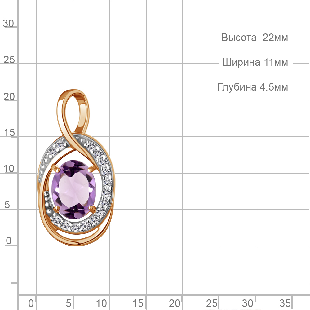 2544904А Подвеска из Серебра с аметистом, фианитами