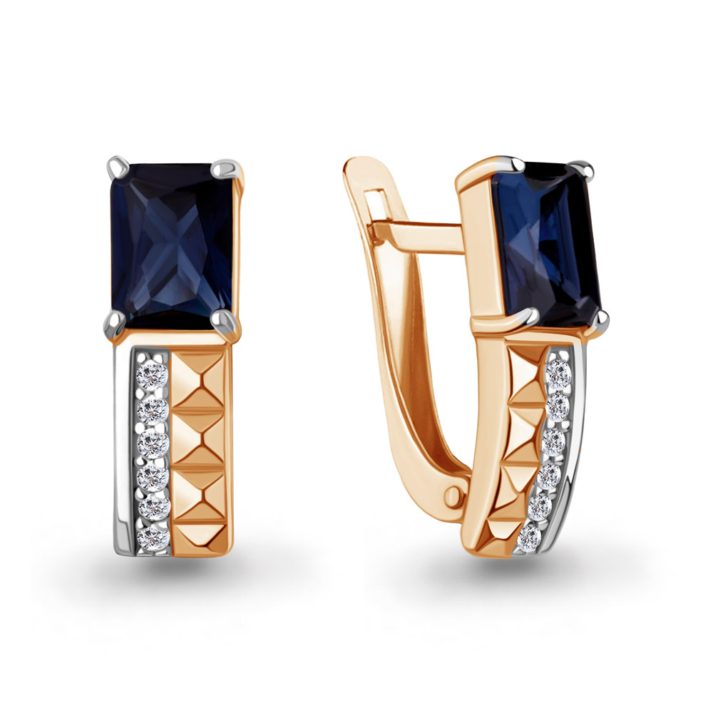 400656АБ Серьги из Серебра с наносапфирами, фианитами