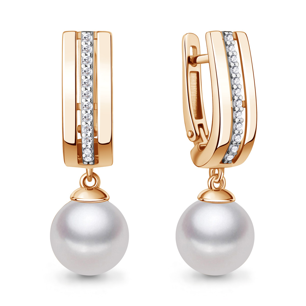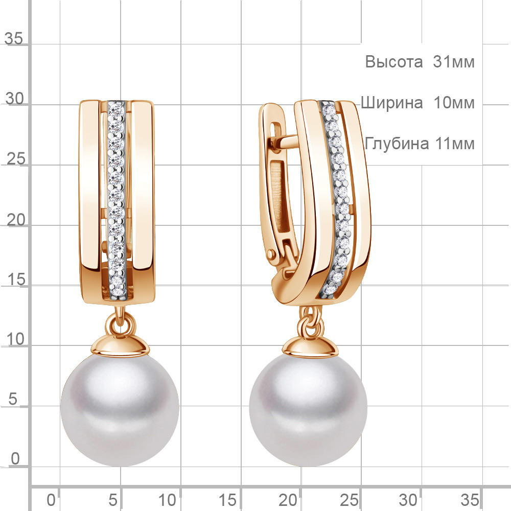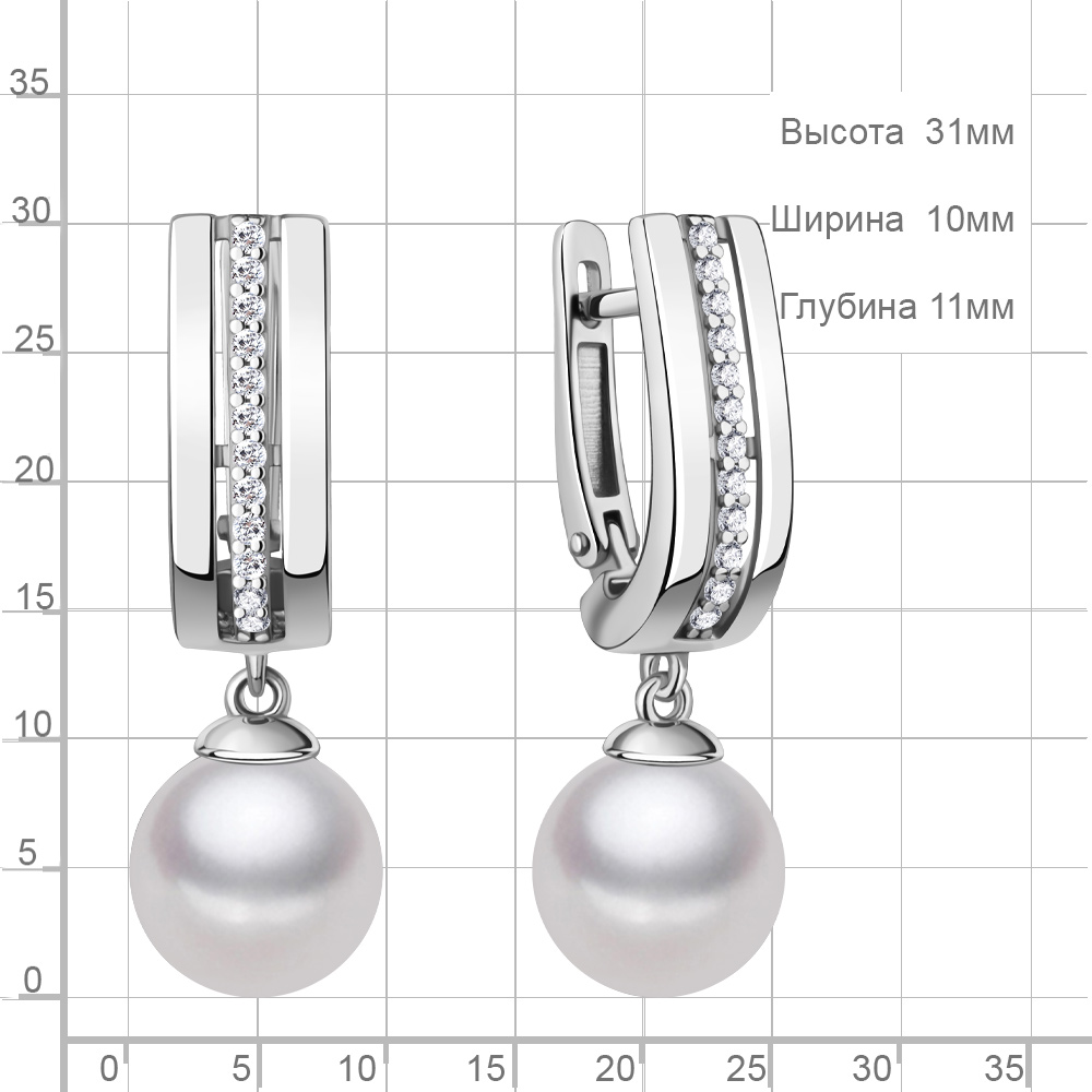 400708А Серьги из Серебра с фианитами, хрустальным жемчугом