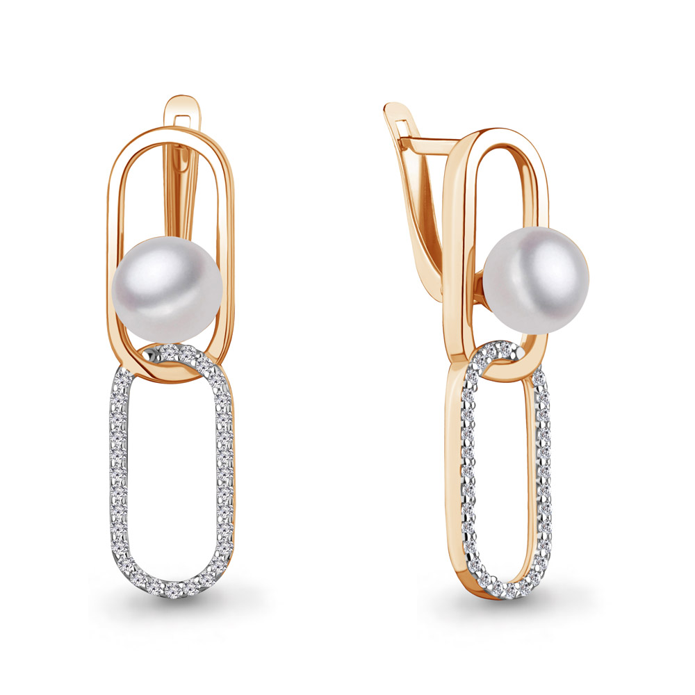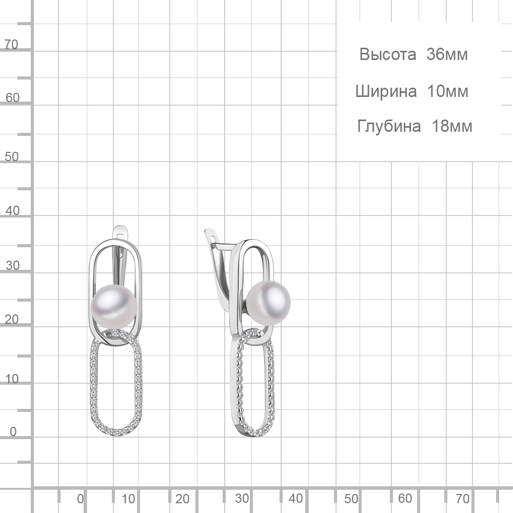 400721А Серьги из Серебра с имитациями жемчуга, фианитами