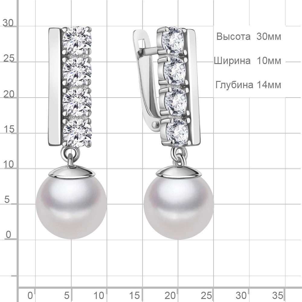 400722А Серьги из Серебра с фианитами, хрустальным жемчугом