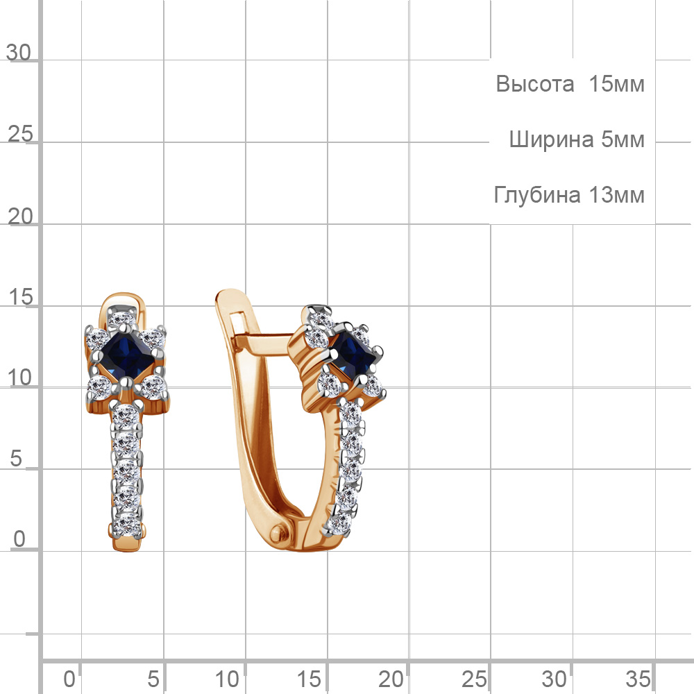 400805АБ Серьги из Серебра с наносапфирами, фианитами