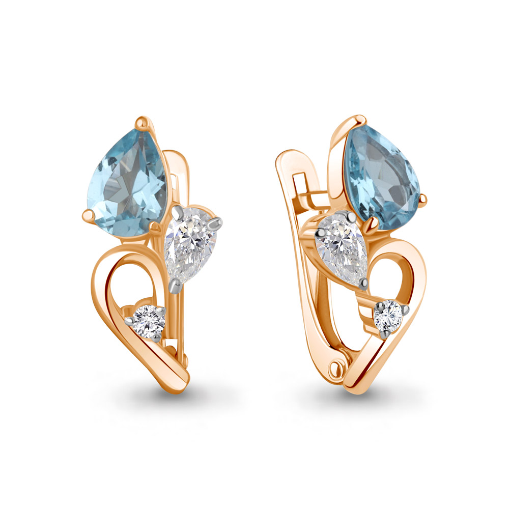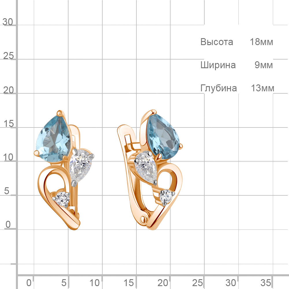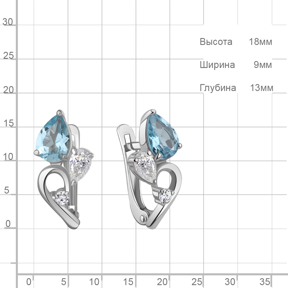 4320705 Серьги из Серебра с топазами свисс блю, фианитами