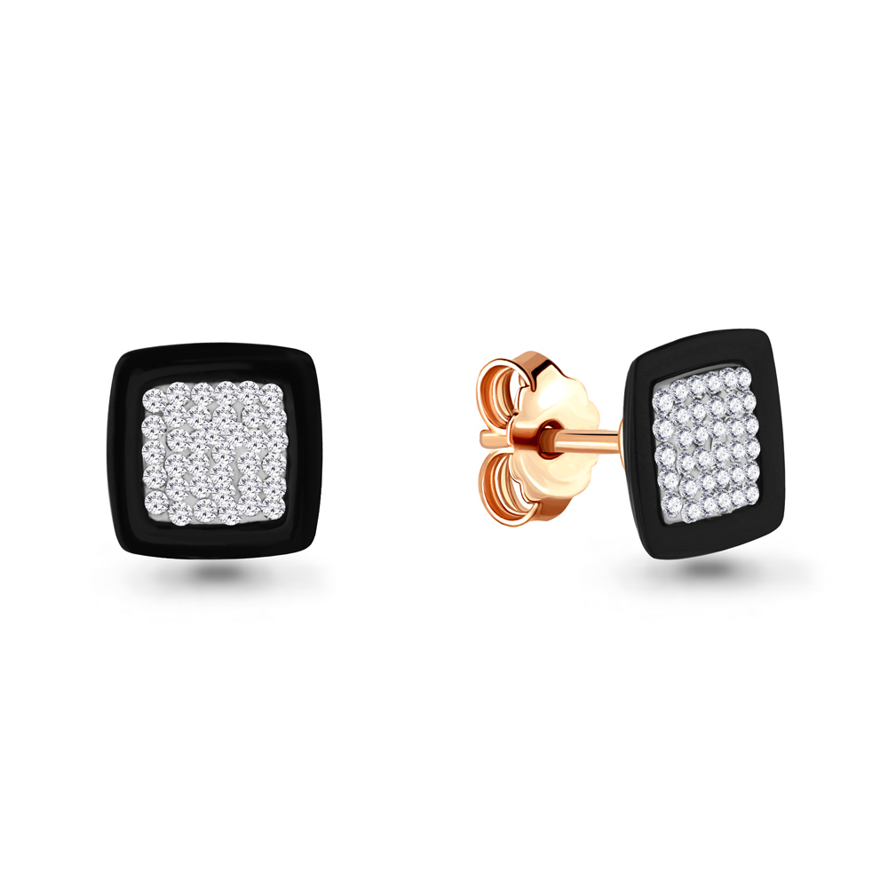 43452 Серьги из Серебра с керамическим покрытием, стёклами