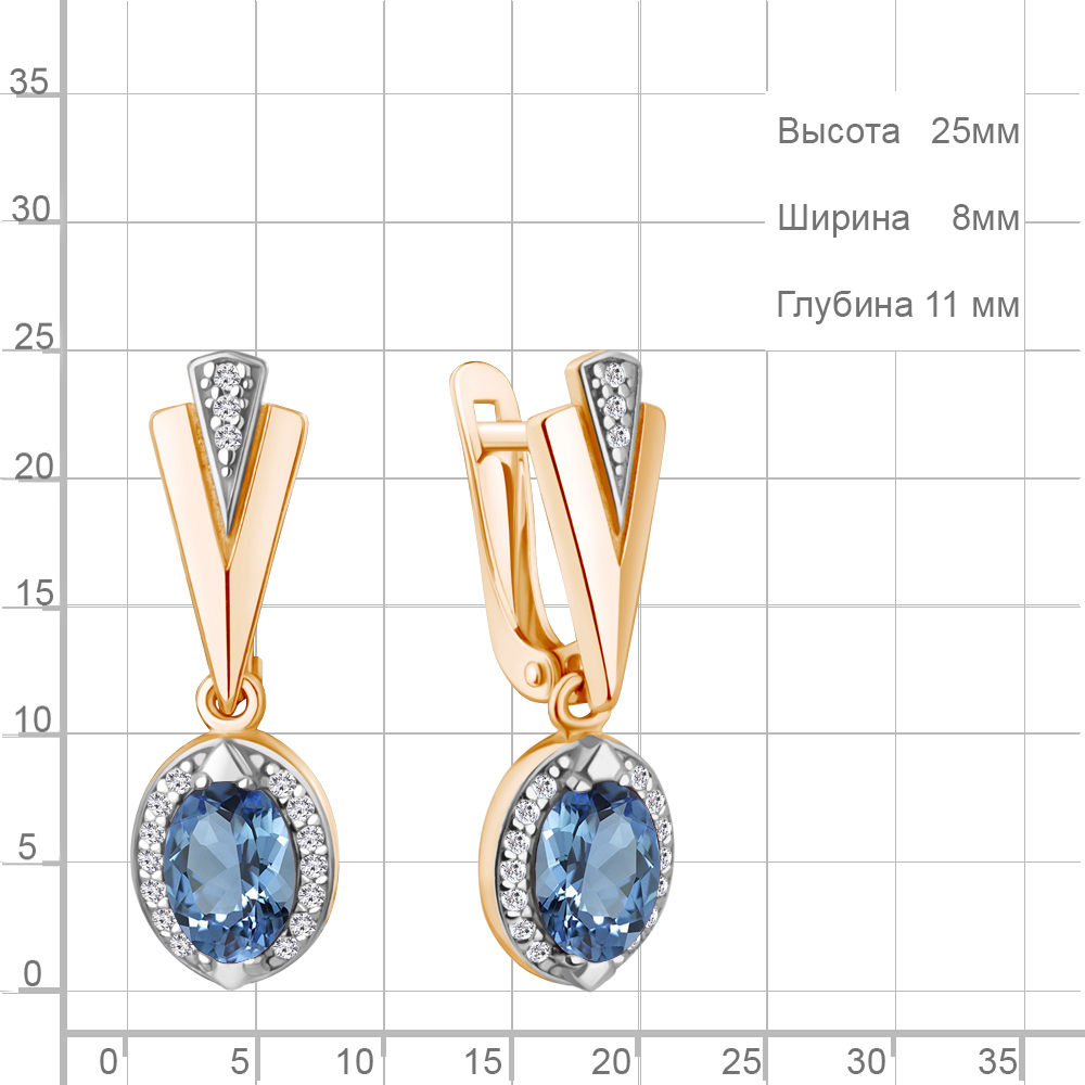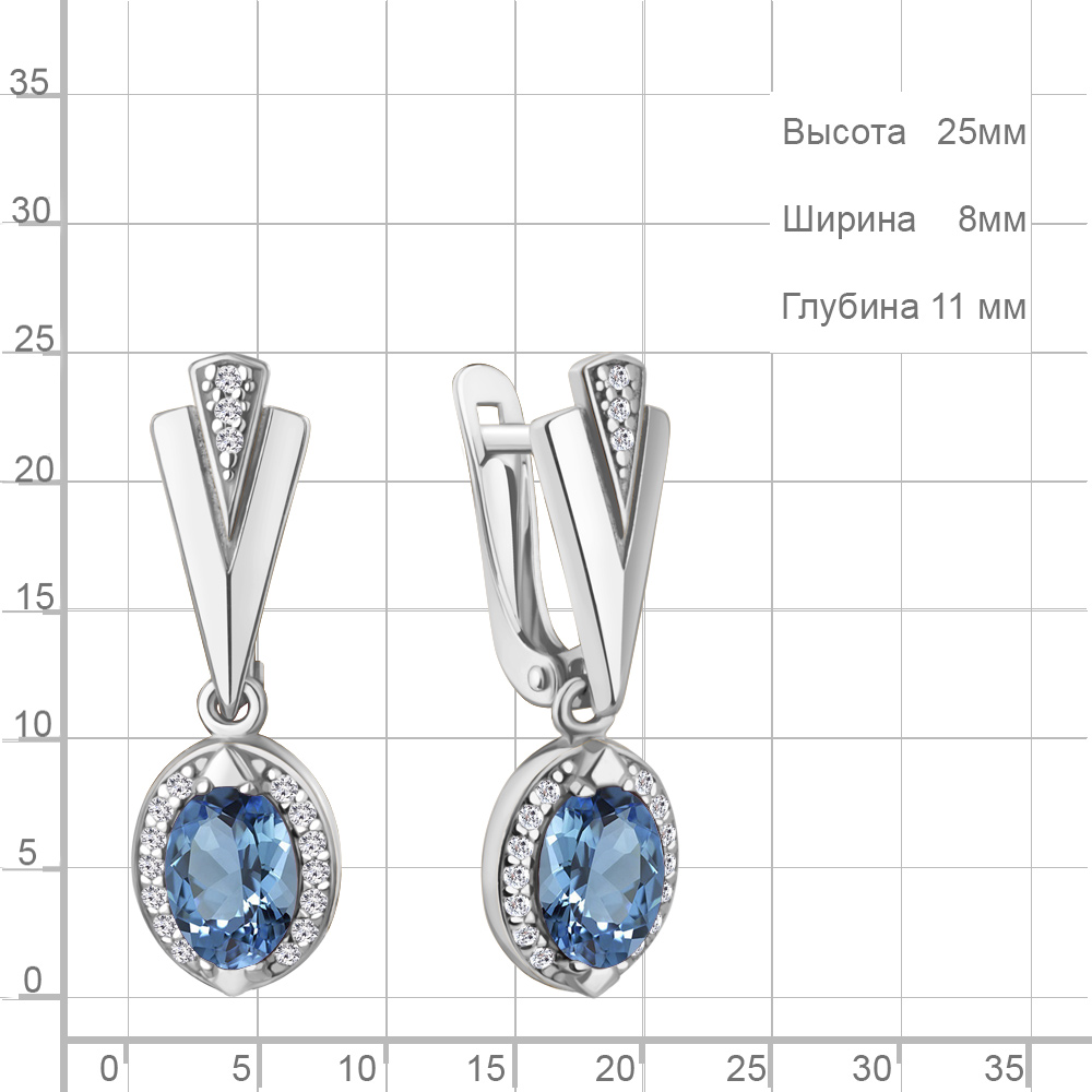 4387905А Серьги из Серебра с топазами свисс блю, фианитами