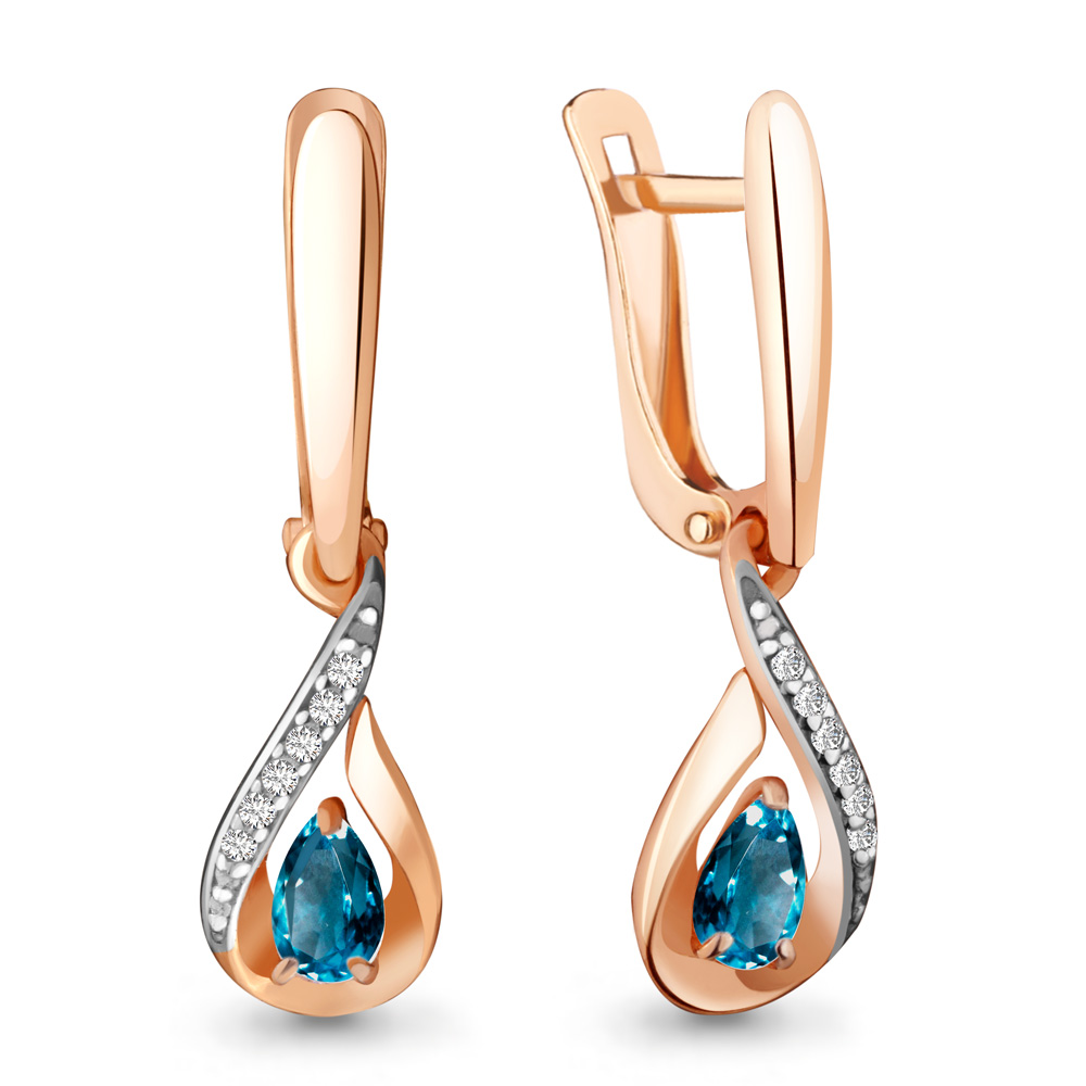 4388108А Серьги из Серебра с топазами лондон блю, фианитами