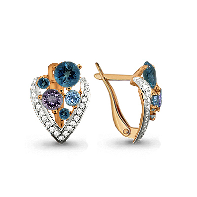 4402641А Серьги из Серебра с аметистами, топазами лондон блю, топазами свисс блю, фианитами