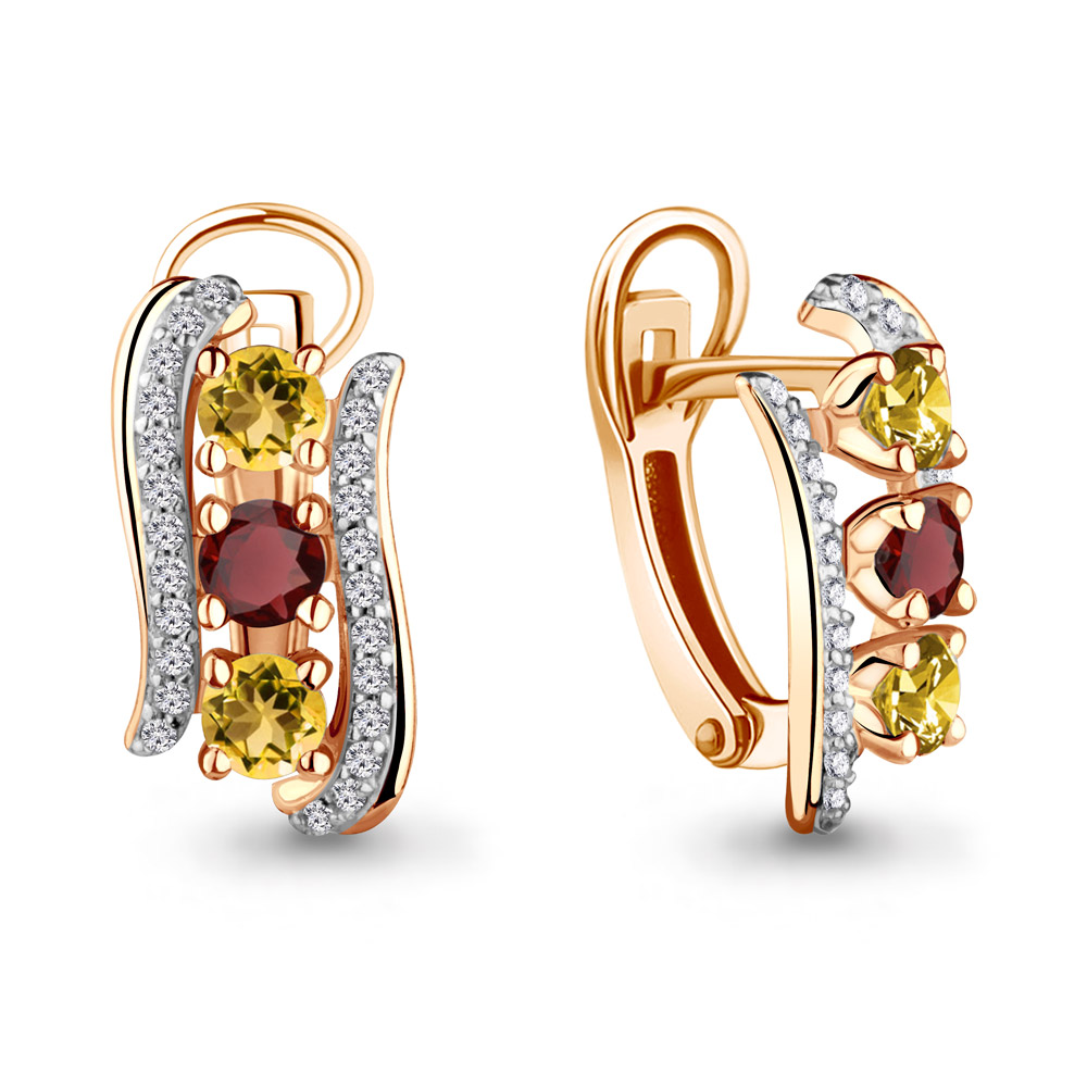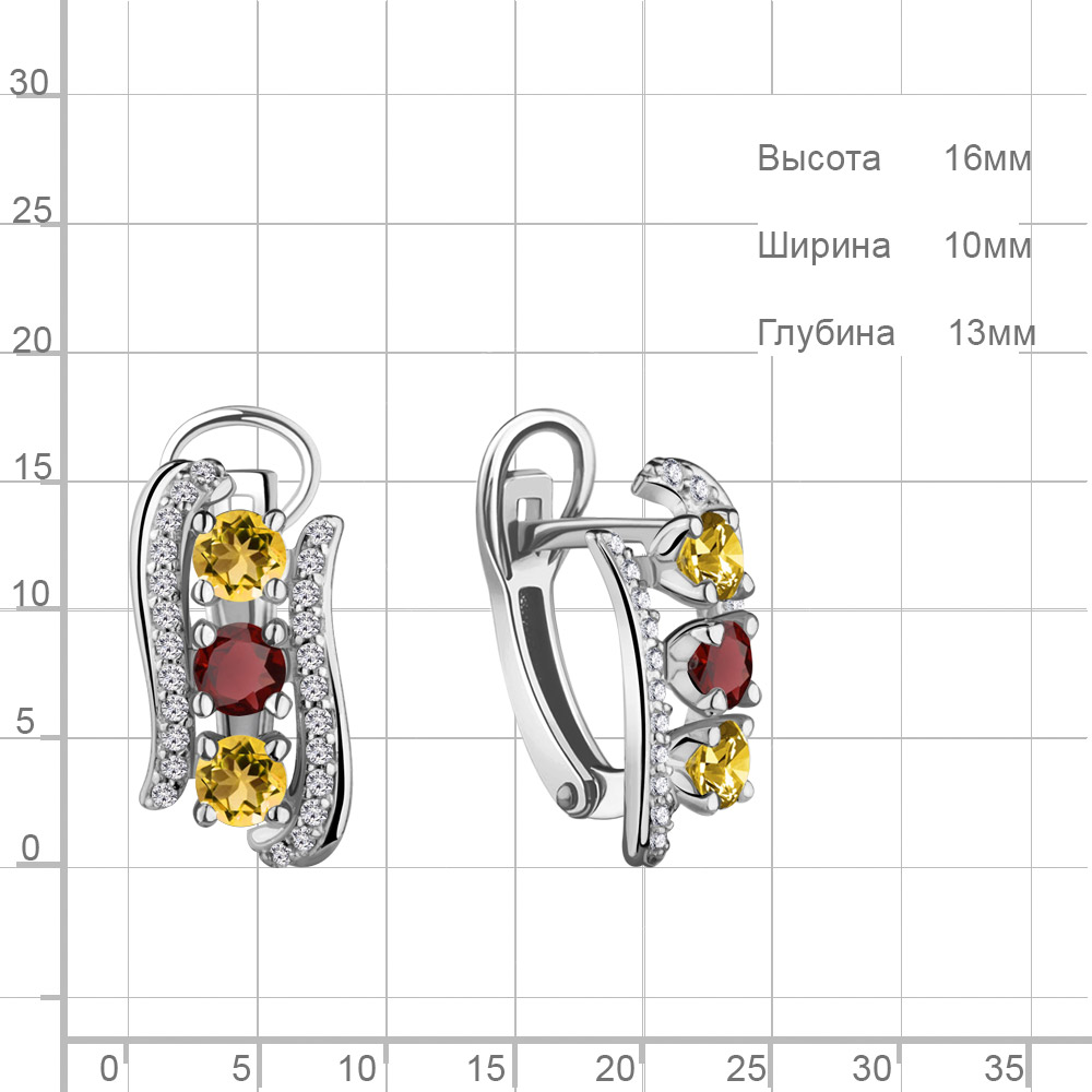 4403437А Серьги из Серебра с гранатами, фианитами, цитринами