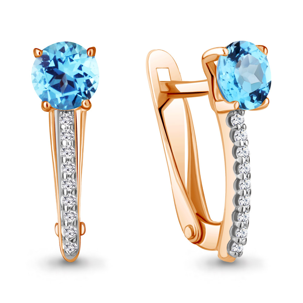 4406205А Серьги из Серебра с топазами свисс блю, фианитами