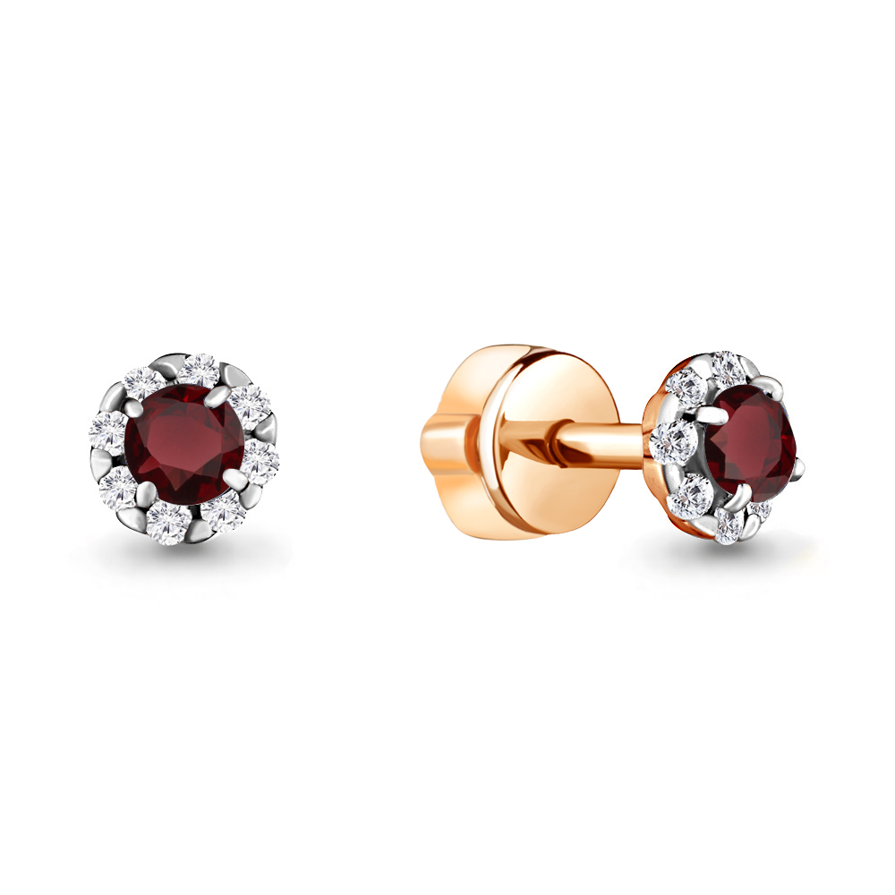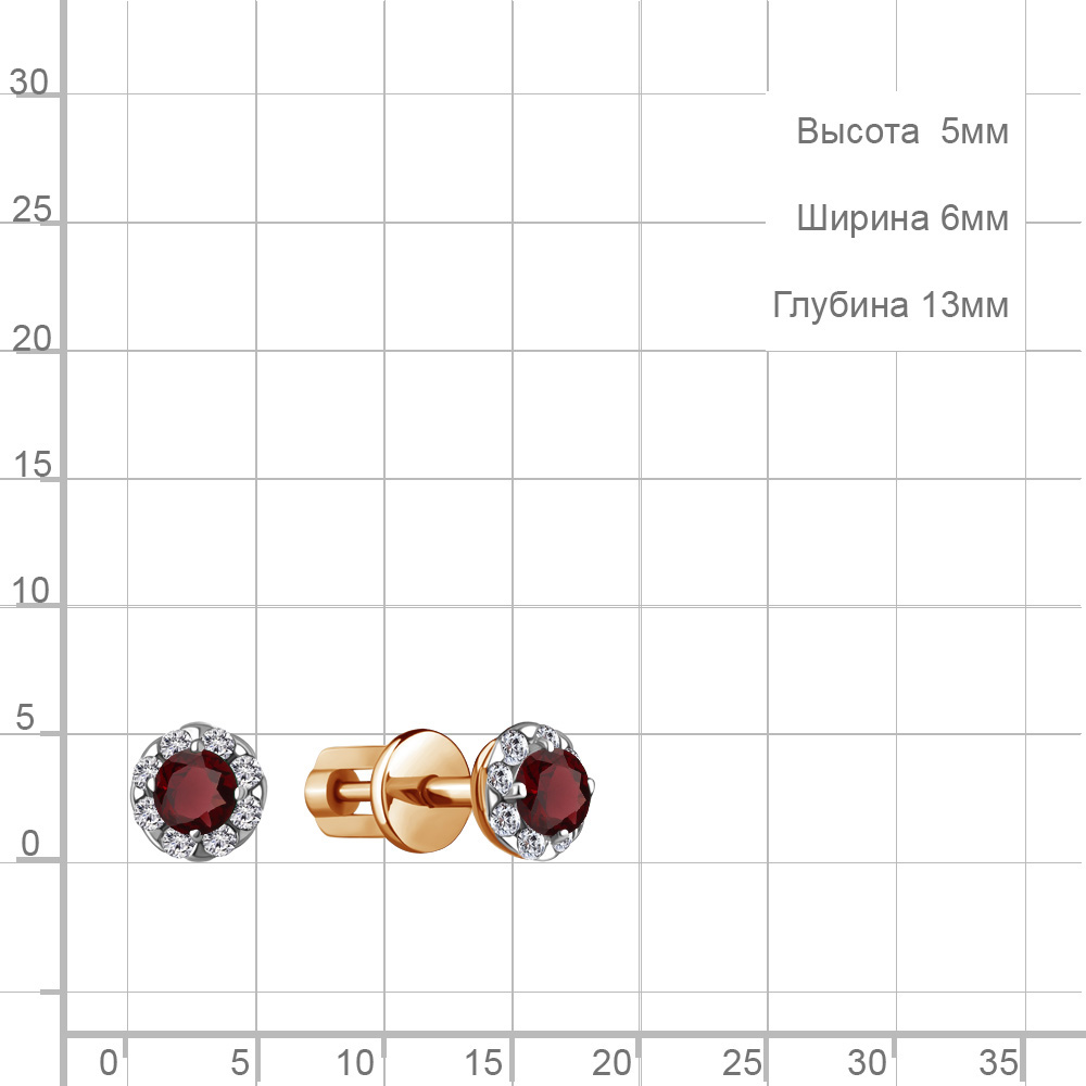 4407503А Серьги из Серебра с гранатами, фианитами