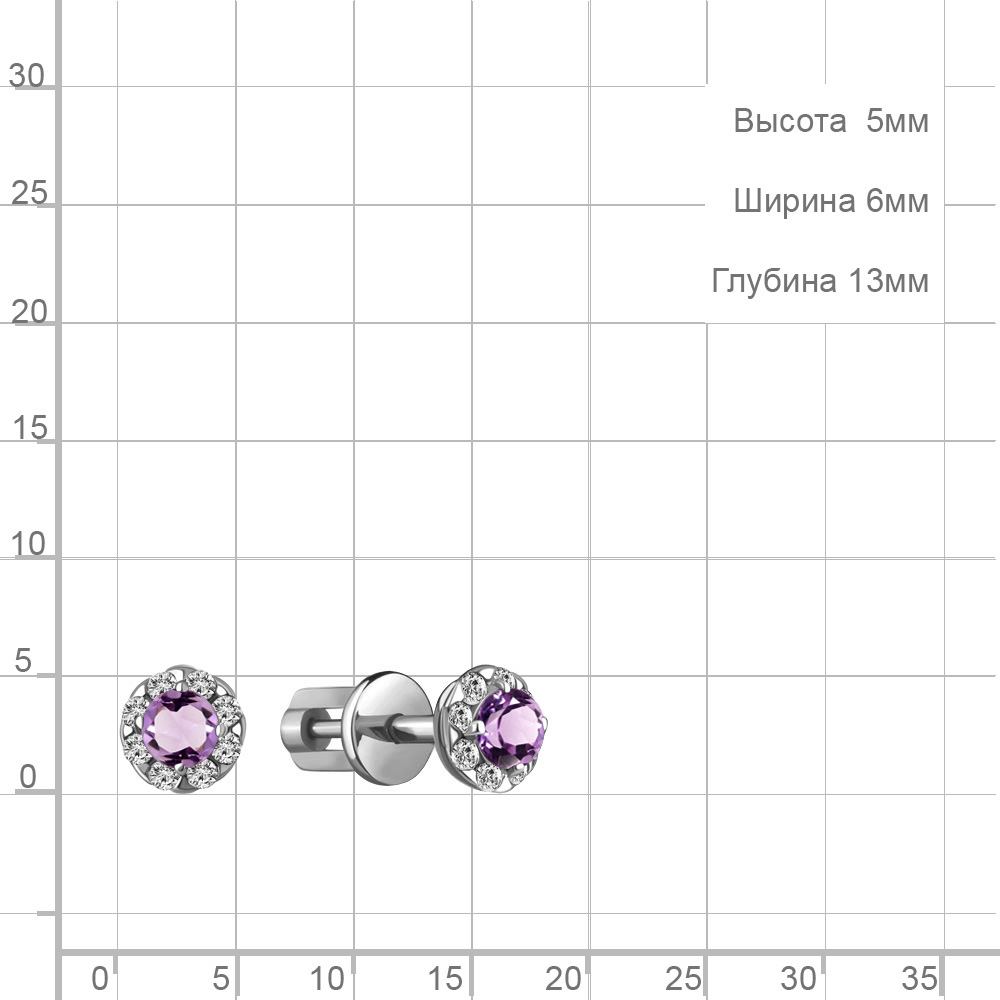 4407504А Серьги из Серебра с аметистами, фианитами