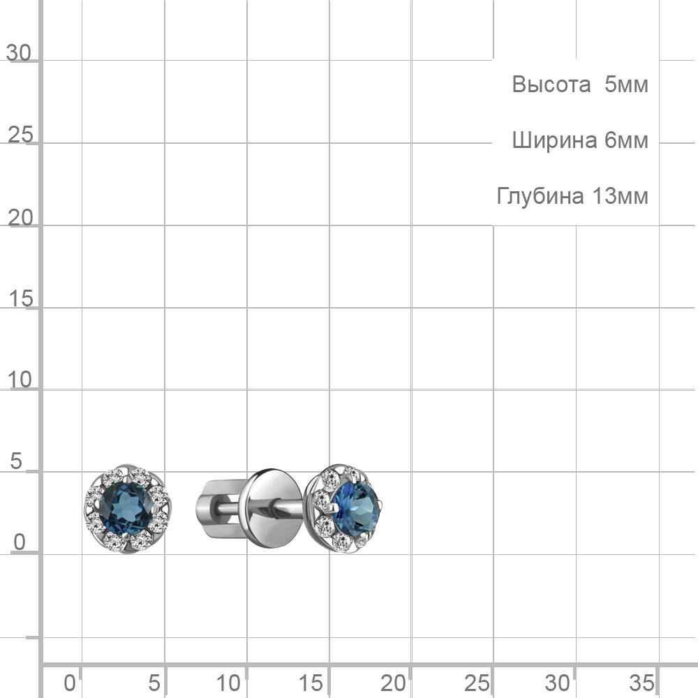 4407508А Серьги из Серебра с топазами лондон блю, фианитами