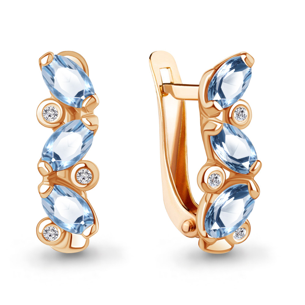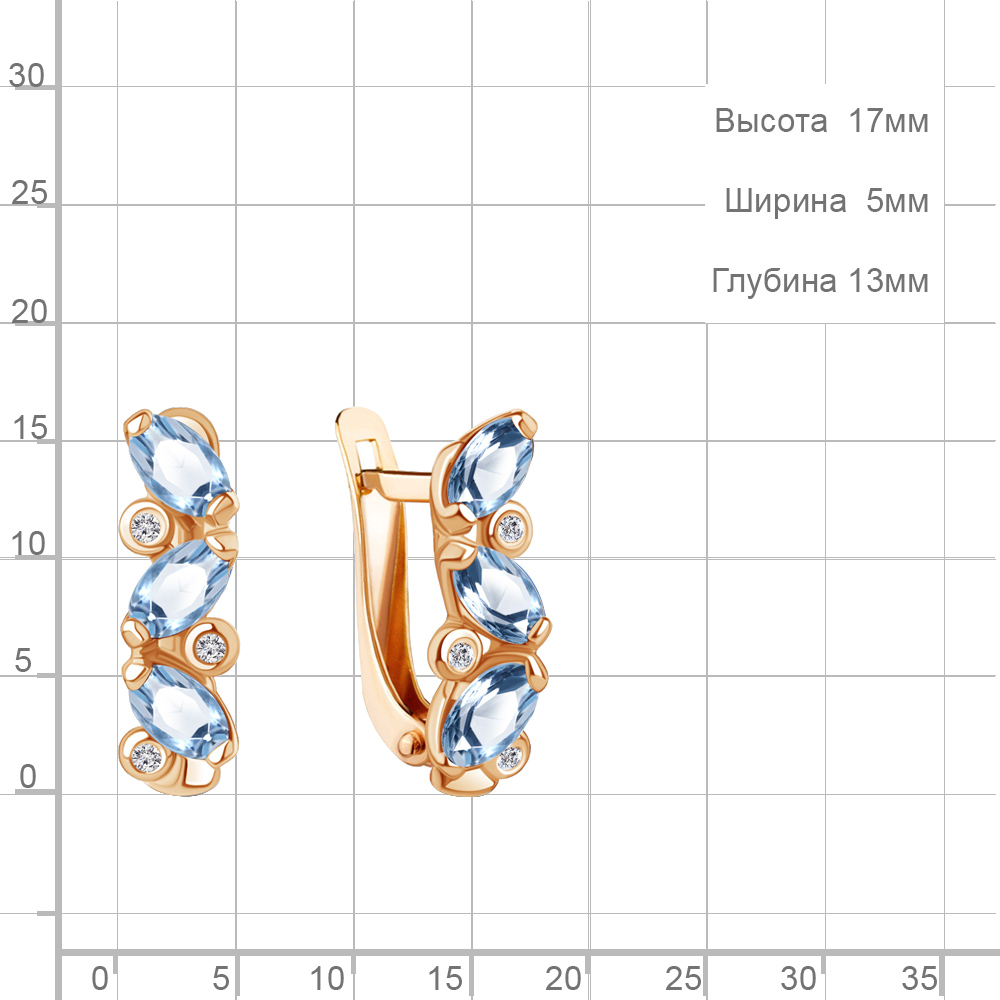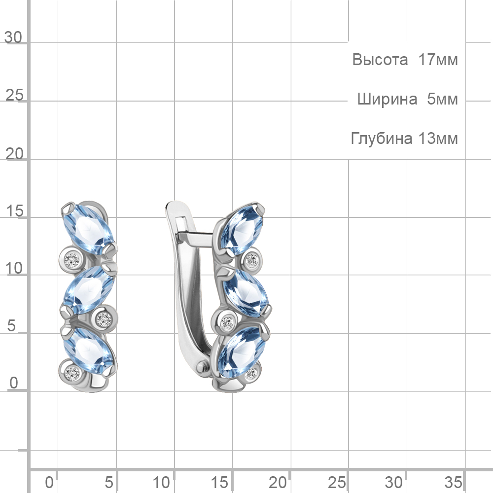 4415805А Серьги из Серебра с топазами свисс блю, фианитами