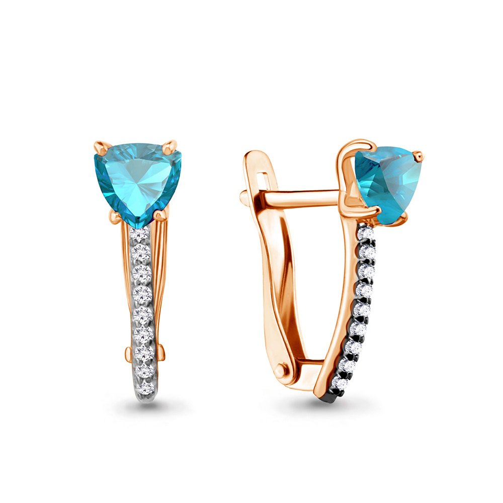 4418905А Серьги из Серебра с топазами свисс блю, фианитами