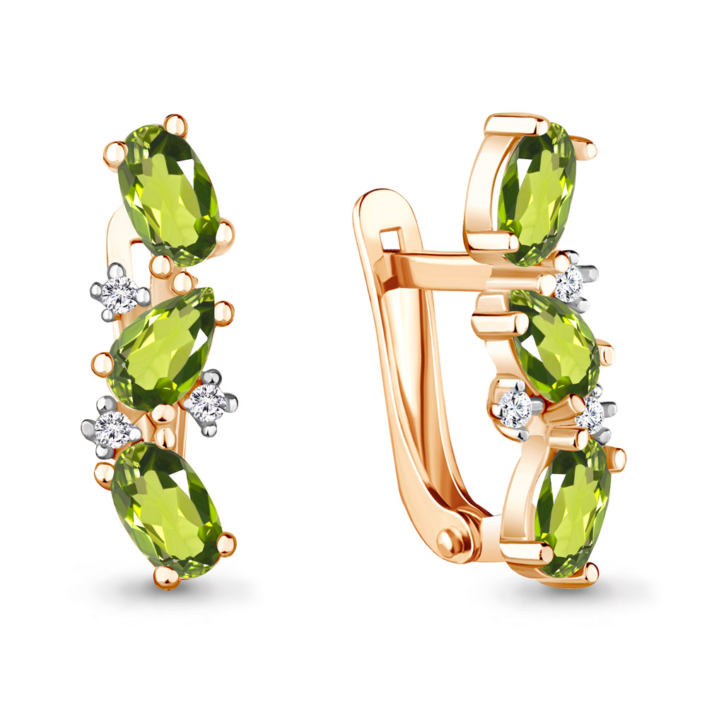 4429907А Серьги из Серебра с фианитами, хризолитами