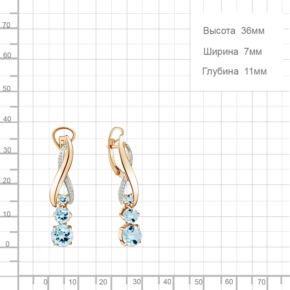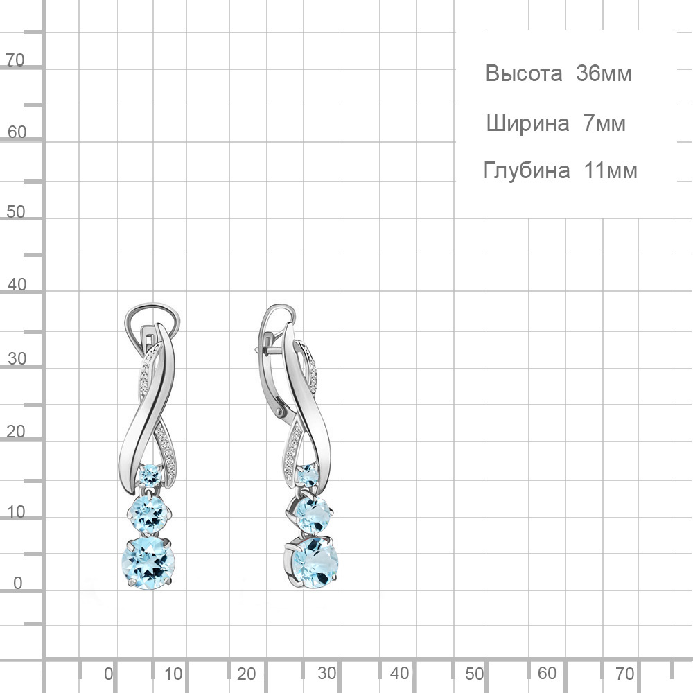 4431602А Серьги из Серебра с топазами скай блю, фианитами