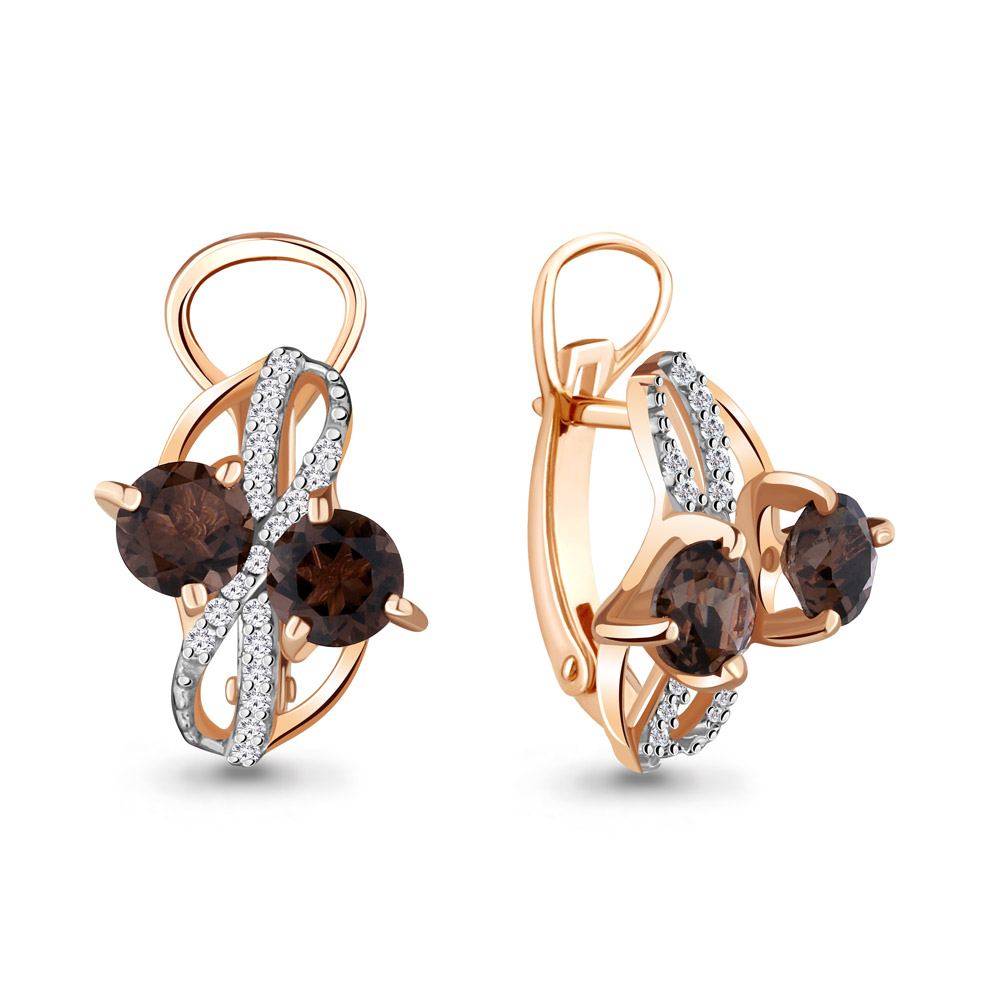 4434701А Серьги из Серебра с кварцами дымчатыми, фианитами