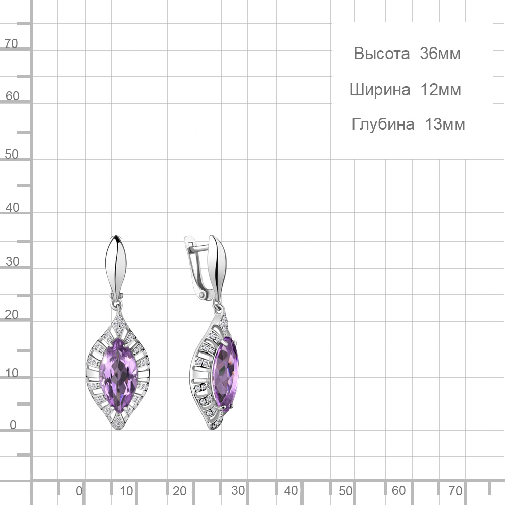 4443704А Серьги из Серебра с аметистами, фианитами
