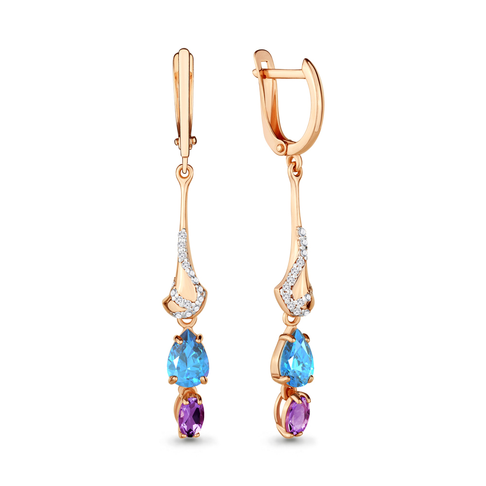 4449230А Серьги из Серебра с аметистами, топазами свисс блю, фианитами