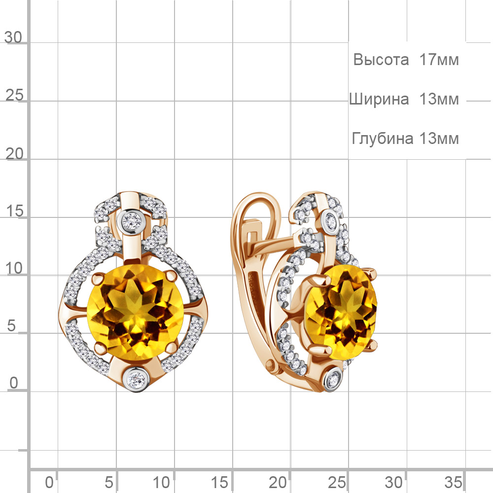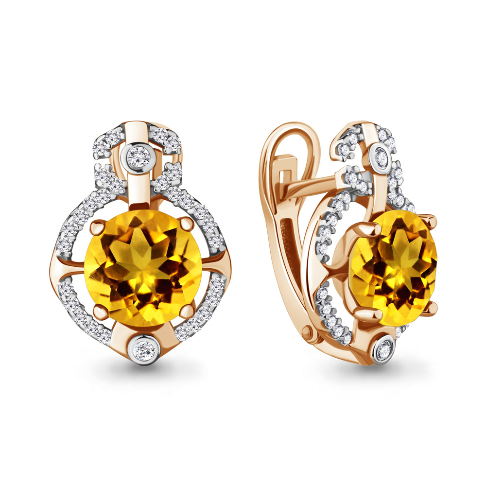 4457306А Серьги из Серебра с фианитами, цитринами из коллекции "Ар-Деко"