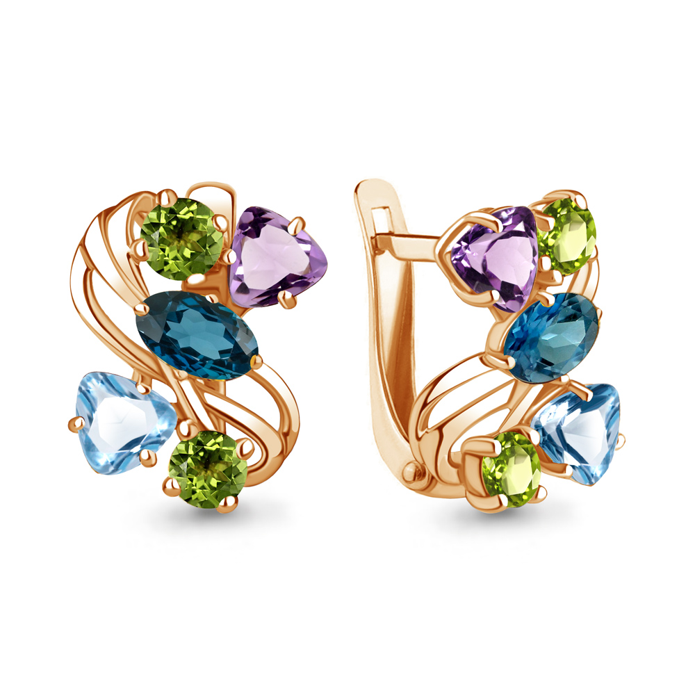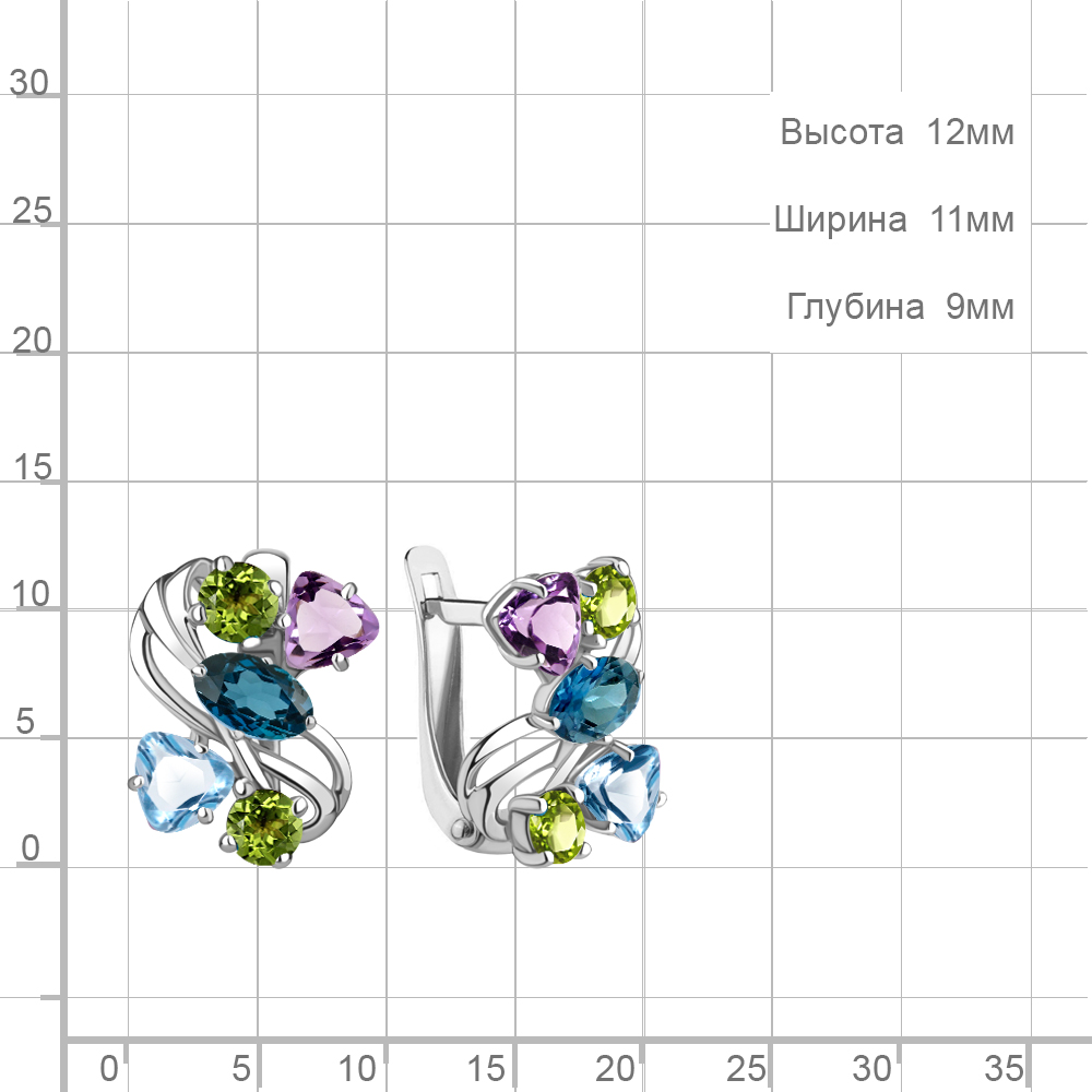 4462052 Серьги из Серебра с аметистами, топазами лондон блю, топазами свисс блю, хризолитами из коллекции "Алиса"