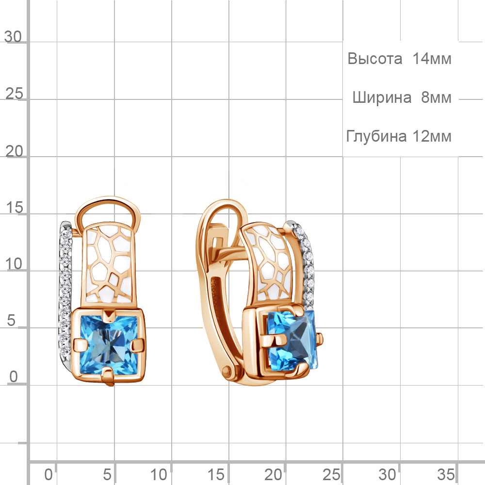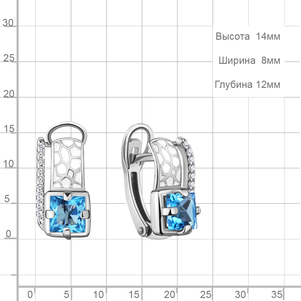 4464505А Серьги из Серебра с топазами свисс блю, фианитами, эмалью из коллекции "Rio"