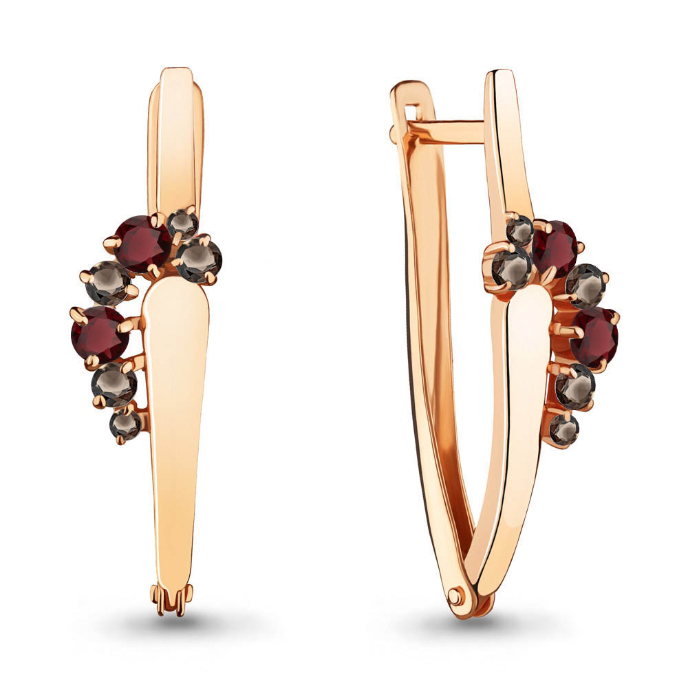 4467836 Серьги из Серебра с гранатами, кварцами дымчатыми из коллекции "Аура"