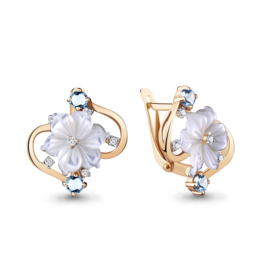 4470405А Серьги из Серебра с поделочными камнями, топазами свисс блю, фианитами из коллекции "Жозефина"