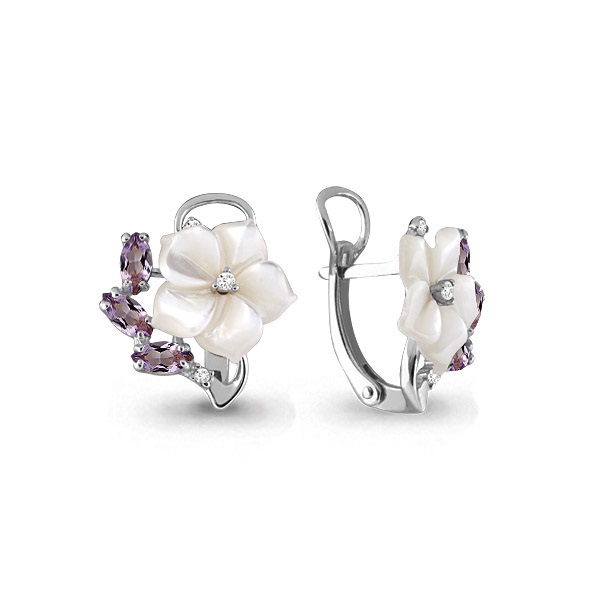 4470704 Серьги из Серебра с аметистами, поделочными камнями, фианитами