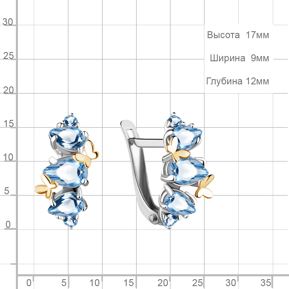 4471705 Серьги из Серебра с топазами свисс блю