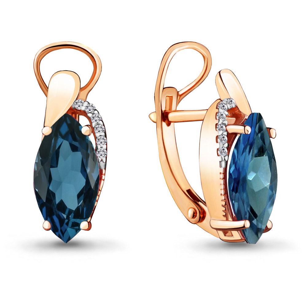 4475908А Серьги из Серебра с топазами лондон блю, фианитами