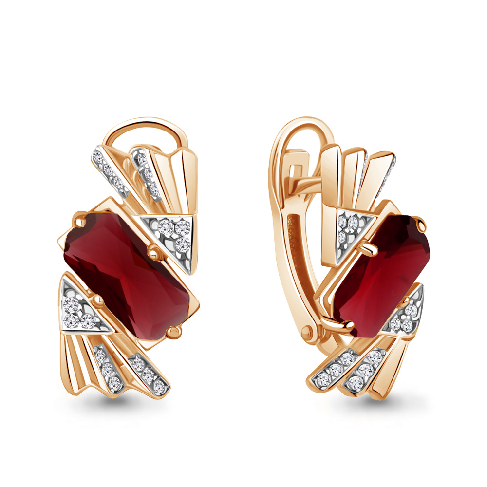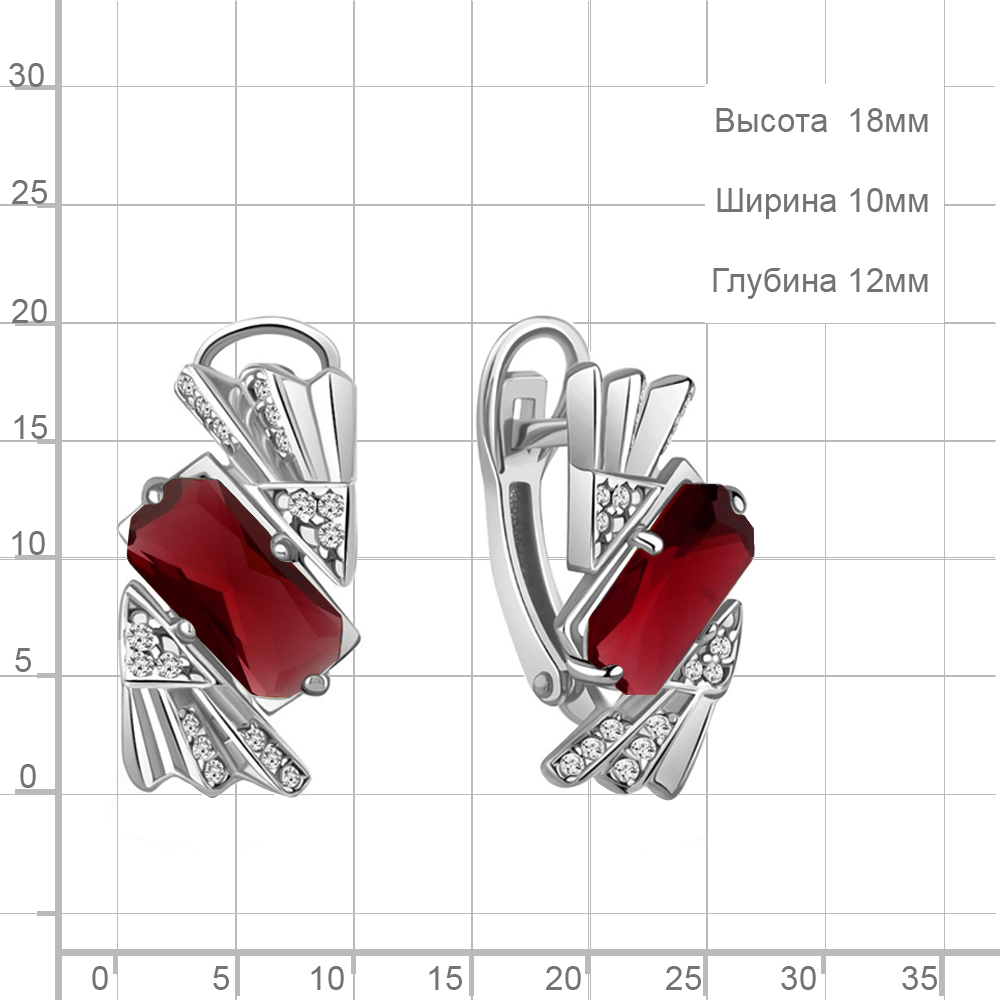 4479885А Серьги из Серебра с наногранатами, фианитами из коллекции "Каприз"
