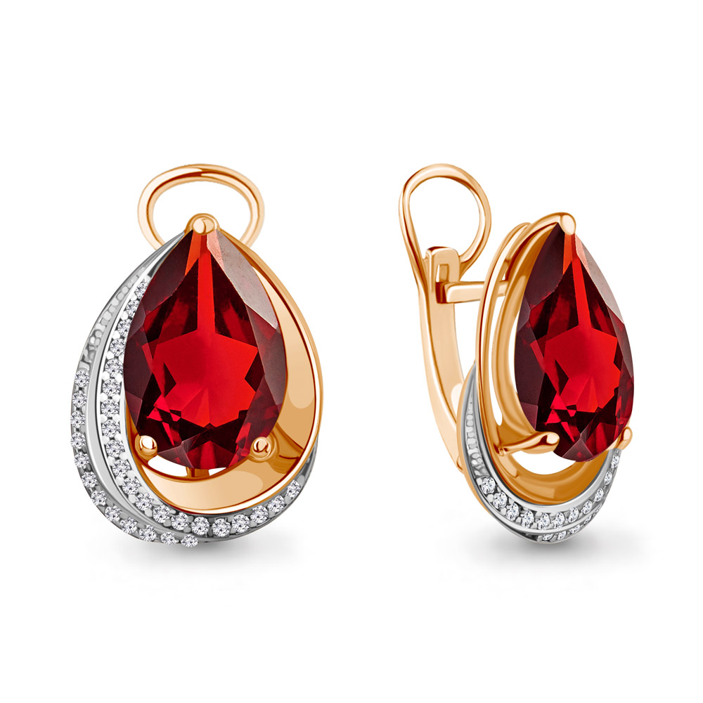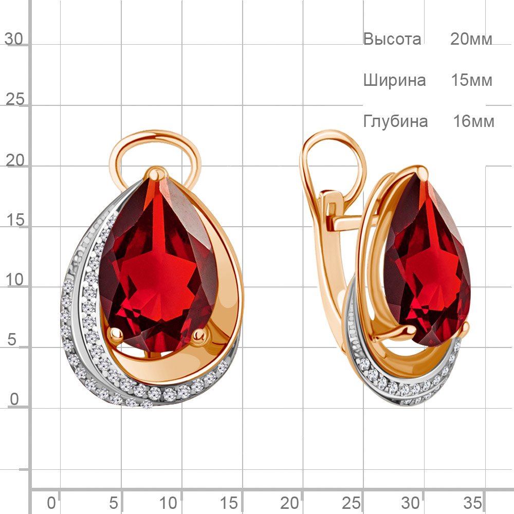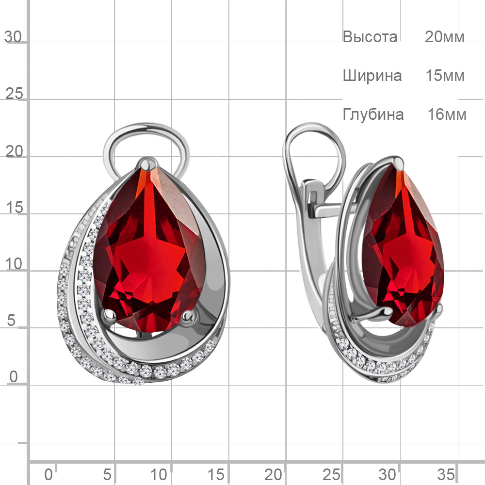 4479985А Серьги из Серебра с наногранатами, фианитами из коллекции "Каприз"